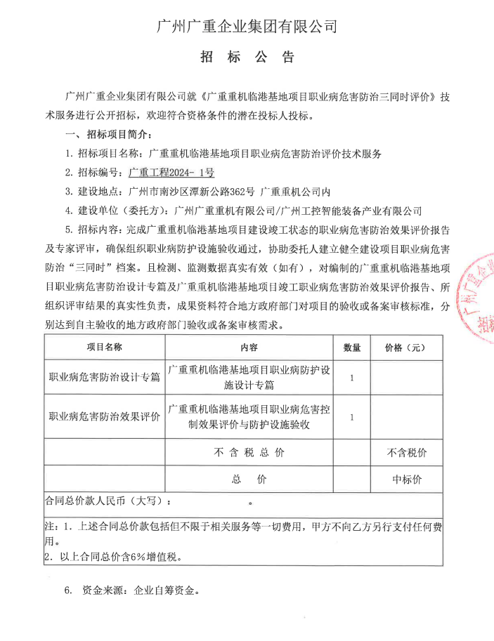 乐动平台重机临港基地项目职业病危害防治三同时评价技术服务项目招标公告