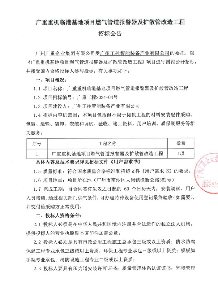 乐动平台重机临港基地燃气管道报警器及扩散管改造工程项目招标公告